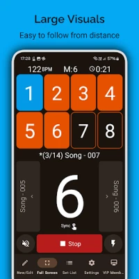 This simple metronome App is designed mainly for on-stage use during LIVE performances. Easily accessible buttons for configuring Meter and Beat-Patterns make this Stage Metronome app easy to use. Big beat-number display can be followed from distance during the performance. The SYNC button is useful to reset beat of an ongoing session. The beat number area can also be used as the Sync button.
